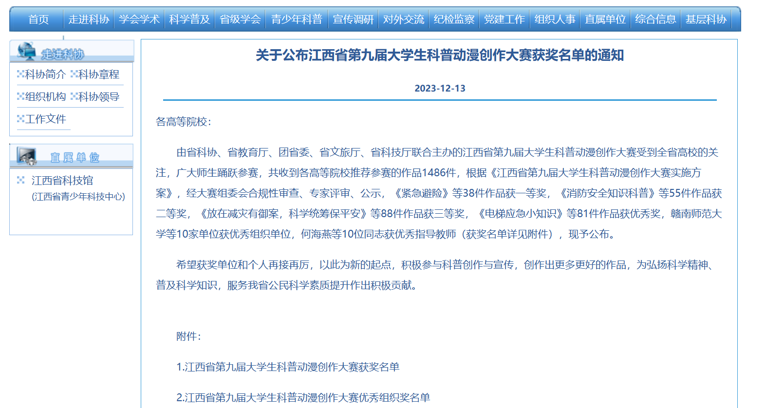 贝博官网师生参加江西省第九届大学生科普动漫创作大赛喜获佳绩