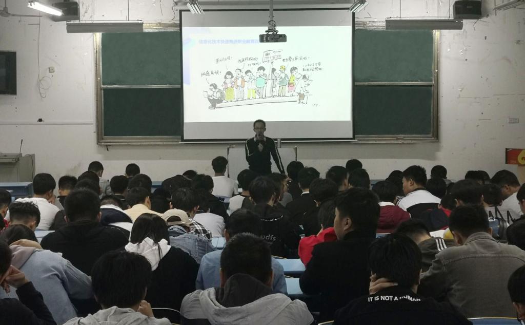 11月29日晚,ballBET贝博BB艾弗森周香庆老师在教学楼J201举办了“别样的课堂”——在线开放课程的学习与交流讲座,此次讲座吸引了来自软件技术和计算机应用技术17、18级200余名学生参加学习。