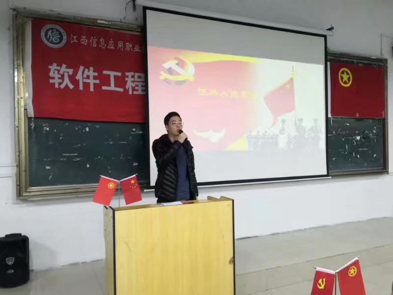 会议伊始,为学生们解读了今年征兵的条件和相关政策,尤其是学生最为关心的大学生应征入伍可享有的优先考学提拔、补偿学费和代偿国家助学贷款、退役后享受就学就业优惠等优抚政策。在会上他鼓励大学生要敢于有梦、敢于追梦、敢于圆梦,让青春在军营的历练中、在为祖国的奉献中闪光。随后,请了位退伍复学的同学为大家谈了部队的生活和训练情况,军队的生活使自己收获了远大的理想信念,坚强的意识、良好的行为习惯和强健的身体素质。在部队培养的顽强作风和坚韧不拔的毅力,将会使我们终身受益。他们号召同学们积极应征入伍,到部队去锻炼自己,成就自己。