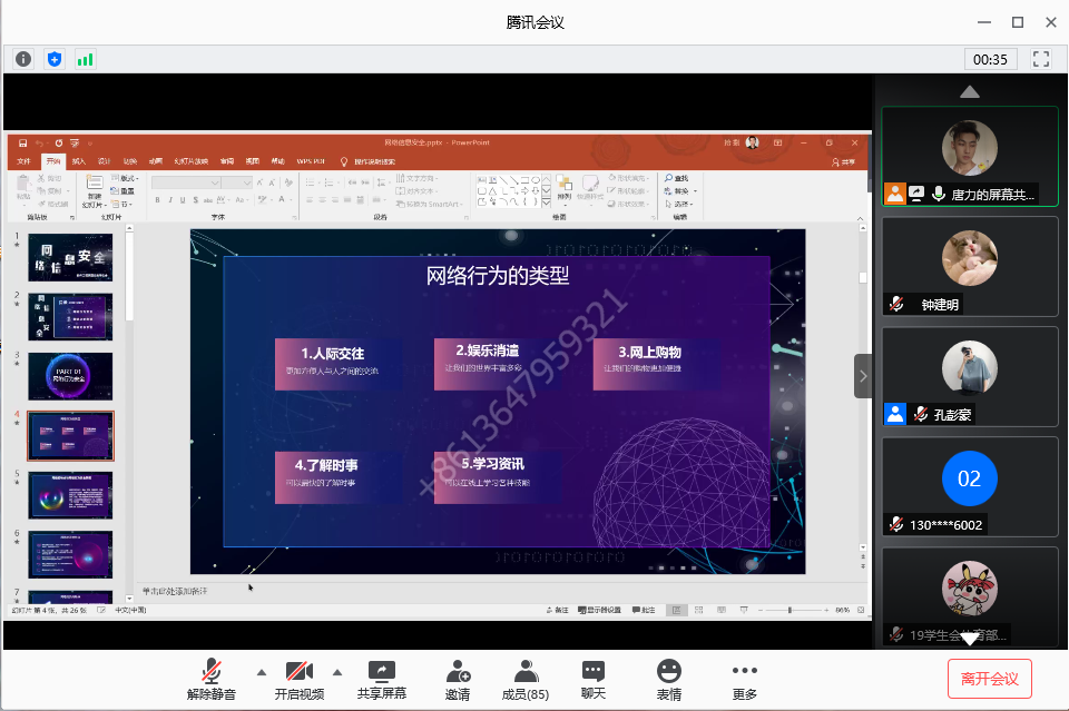 此次会议的目的就是为让同学们清楚地认识到网络安全的重要性,学会理智的对待各种诱惑,树立正确的消费观念,做网络的主人,使丰富的网络资源为己所用,提高自我竞争力,从而更好地安全地利用网络促进我们学习的进步。