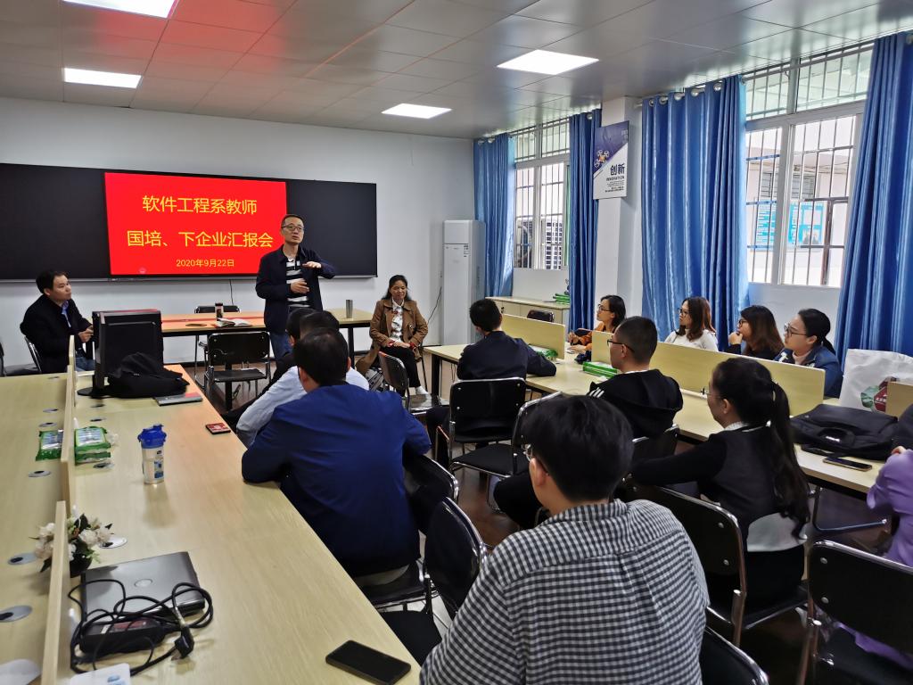 2020年9月22日下午,ballBET贝博BB艾弗森在实训楼509召开了2020年暑假教师下企业、国培汇报会,胡颖辉副院长听取了汇报。