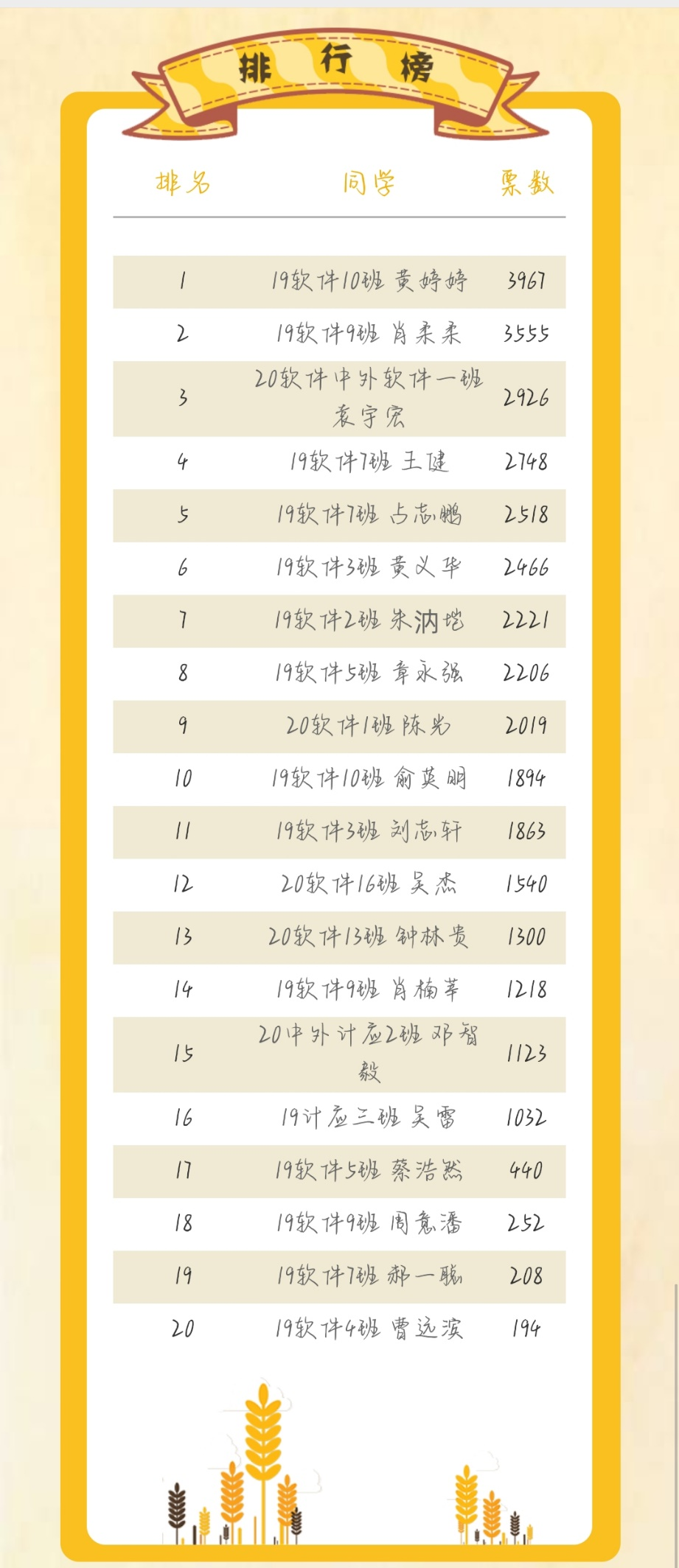 本次大赛以线上投票的形式进行,同学们先将制作好的简历交由指导老师,再由指导老师评选出20张优秀简历进行线上投票环节。比赛过程中每位参赛选手各尽其才,参赛作品各具特色,富有创意。在经过一周的投票后,统计出所有参赛作品的最终票数并进行排名,前10名赢得本次活动的精美奖品。