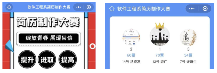 6月6日至14日,我系“扬梦想之帆,启就业之旅”简历制作大赛通过线上投票方式进行。此次简历制作大赛为同学们在简历制作、设计方面提供了一个广阔的交流平台,提高了学生创新与实践能力,增进了学生的就业意识。活动一经通知,同学们积极报名参赛,6月14日投票通道正式关闭,最终来自21软件1班的游广同学荣获“状元”,21软件4班的汤成发同学喜得“榜眼”,21软件3班的许萌生同学以几票之差摘得“探花”。