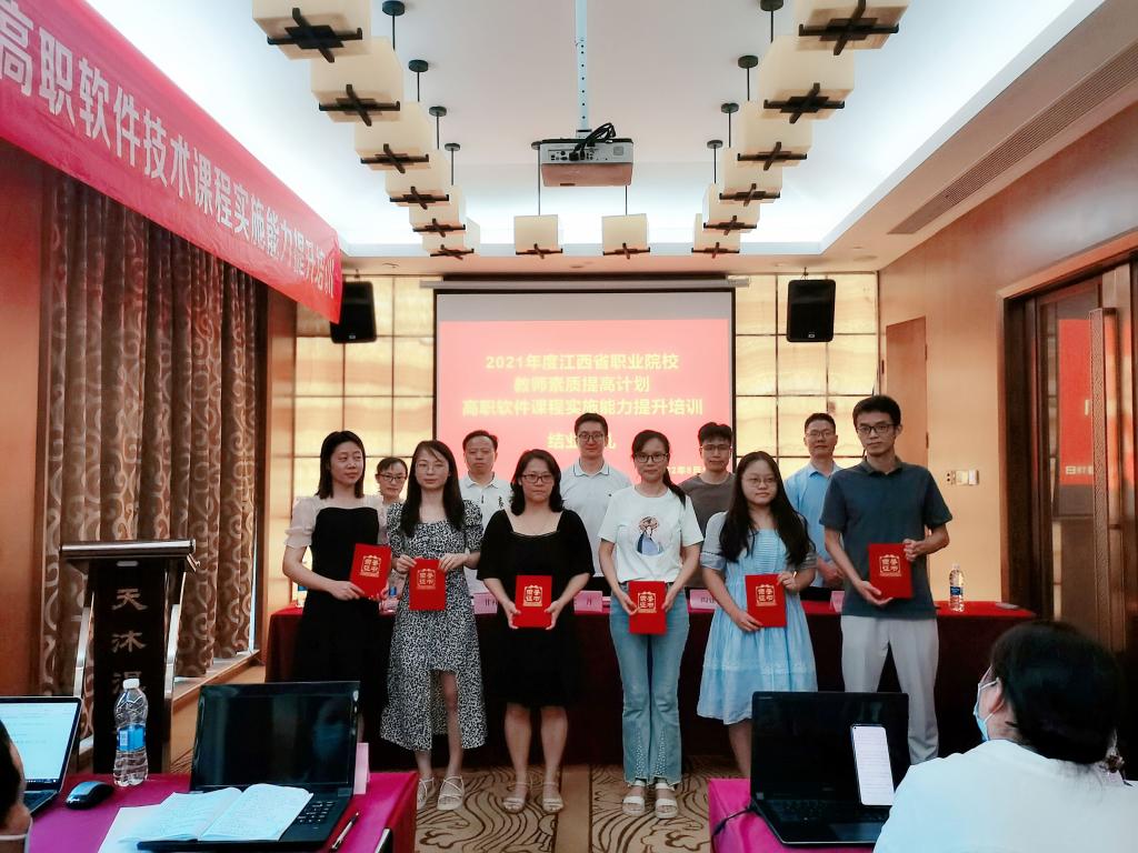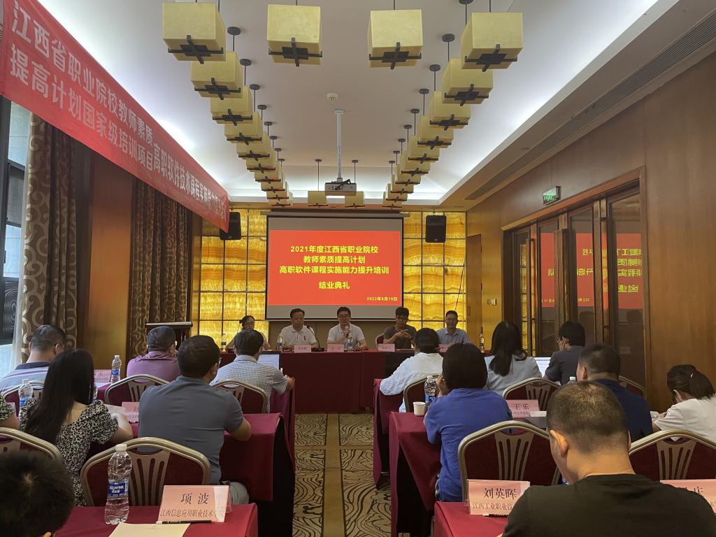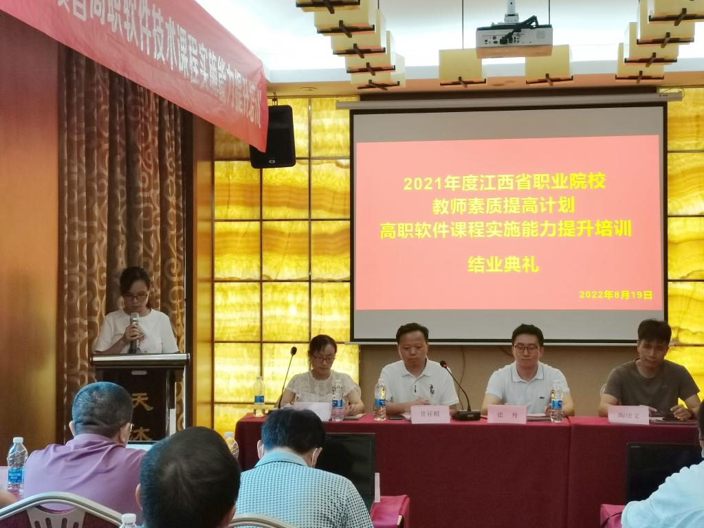 8月19日下午,由江西省教育厅主办、学院承办的2021年度江西省职业院校教师素质提高计划高职软件技术课程实施能力提升培训班结业典礼在南昌天沐温泉大酒店举行。江西省高校师资培训中心副主任张丹,学院党委委员、副院长陶建文,继续教育培训中心以及ballBET贝博BB艾弗森相关负责人出席,培训班全体学员参加结业典礼。