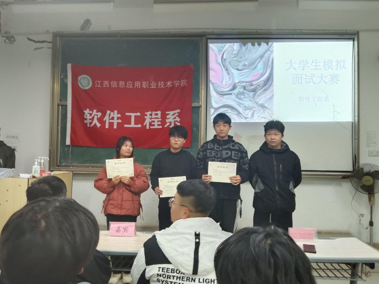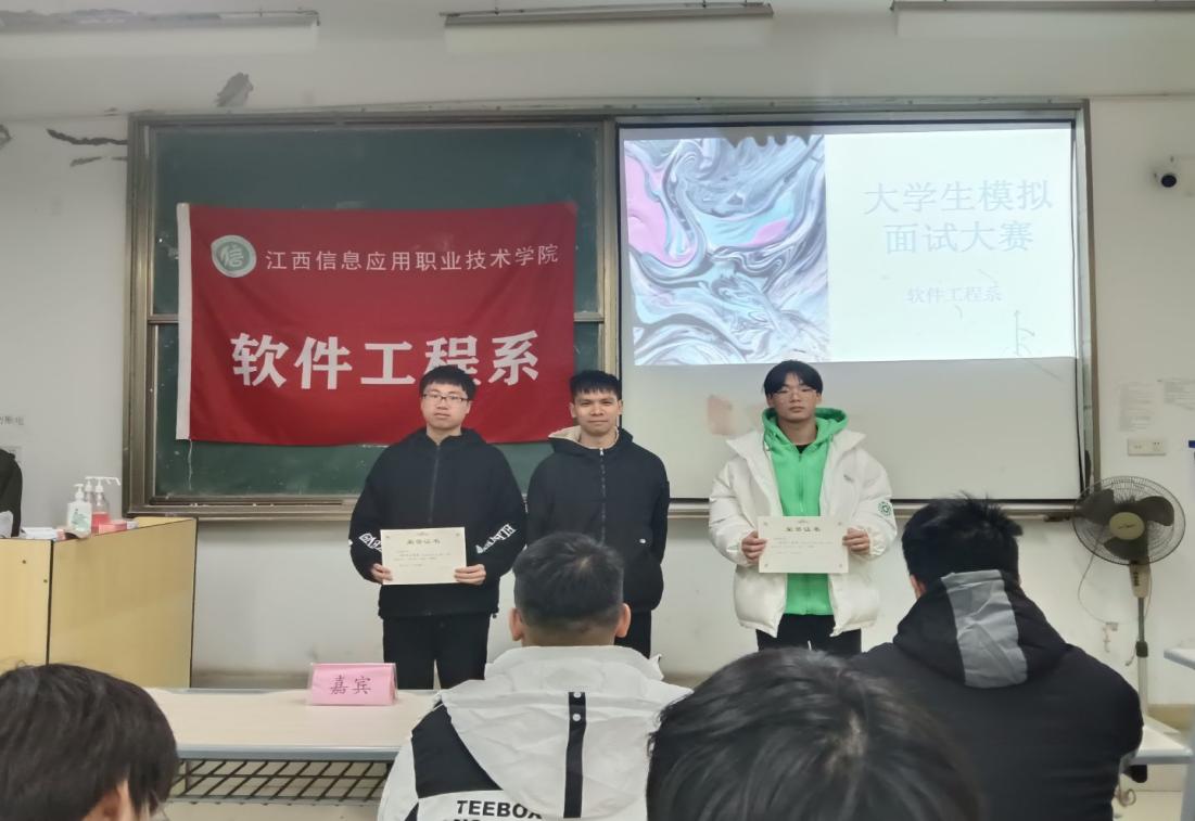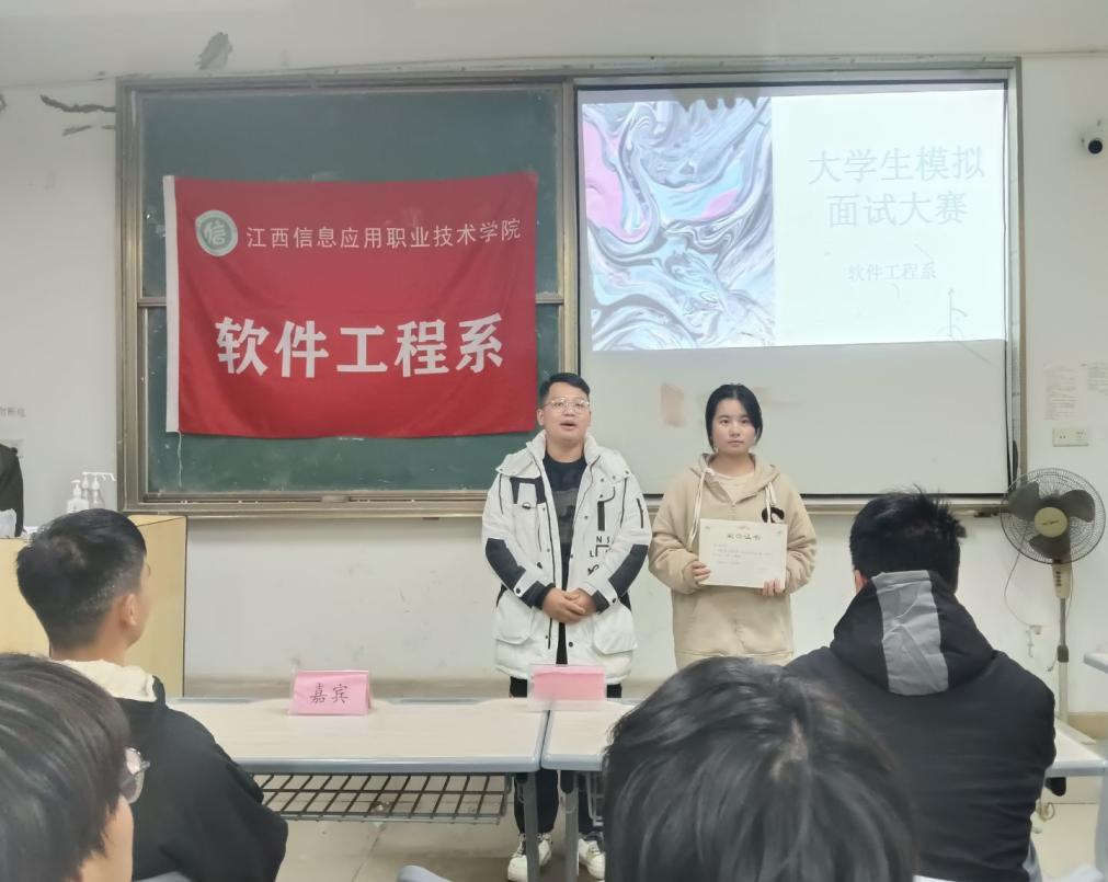比赛规则为参赛选手有两分钟自我陈述以及三分钟评委提问,而后分为两个小组设置问题情境。精确的语言表达加上精美的PPT展示,各个选手分别从自己的爱好、特长,到求职意向以及在该方面的优势都做了详细介绍。面对评委犀利的提问,选手们镇定自若,认真回答。经过激烈的角逐,比赛也来到了尾声,主持人宣布获奖名单本次活动:一等奖为22动漫1班严远晴,二等奖为22软件1班郑嘉豪和22数艺周欣仪,三等奖为22软件1班李国豪和22数艺李嘉磊和22软件1班万心意。