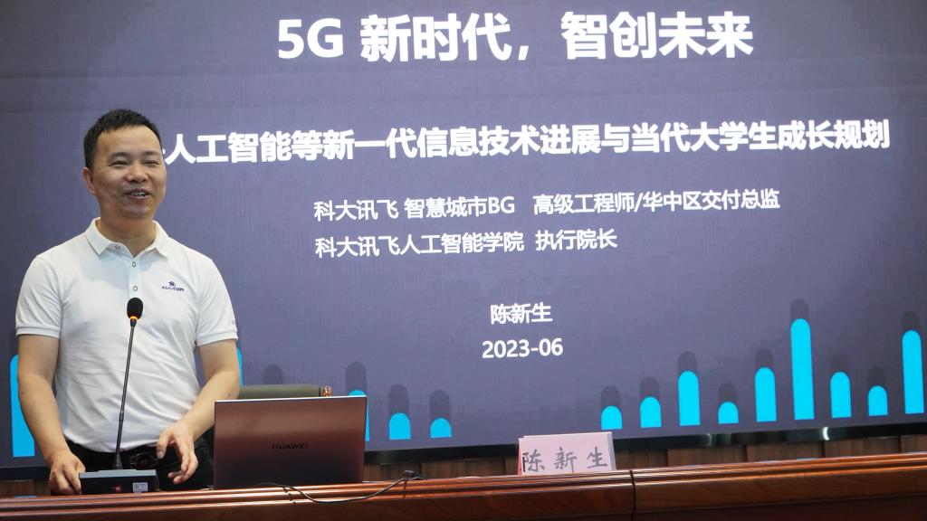 6月5日,ballBET贝博BB艾弗森邀请科大讯飞股份有限公司华中区交付总监、科大讯飞人工智能学院执行院长、智慧城市BG高级工程师陈新生,给2021级学生做了一场精彩的“5G新时代,智创未来——人工智能等新一代信息技术进展与当代大学生成长规划”专题讲座。