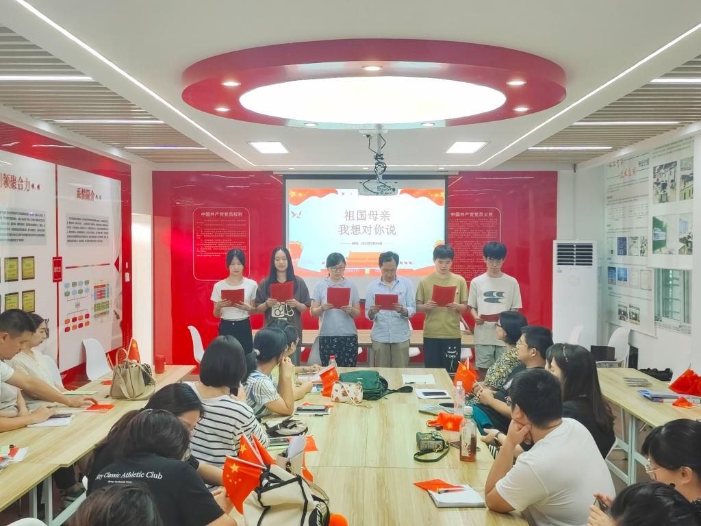 9月26日下午,支部老党员李小荣和王稳波两位老师带领学生积极分子以“祖国母亲我想对你说”为题进行了一场精彩的朗诵表演,师生们通过字里行间表达了对祖国的热爱赞美之情,精彩的表演感染现场每一位听众,以朗诵之名为祖国华诞献上最真挚的祝福。