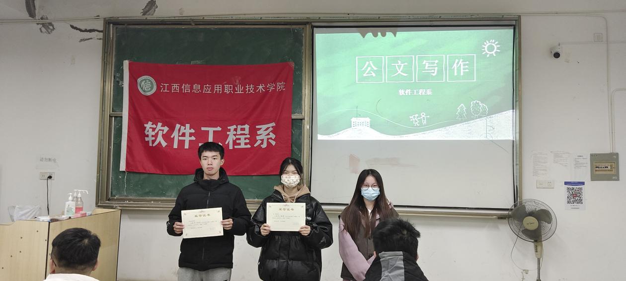 本次大赛设置综合文稿撰写、调研报告撰写和公文改错三个单项比赛,采取闭卷方式答题,重在比拼学生的综合文稿能力,体现参赛选手政治理论素养和综合能力素质。经过一轮比拼,最终以下同学荣获奖项:一等奖22软件1李鑫,二等奖22VR班朱丹、22动漫1班孙泳琪,三等奖22软件1班周雯龙、22数艺班黄蓉、22软件1班付军贤。