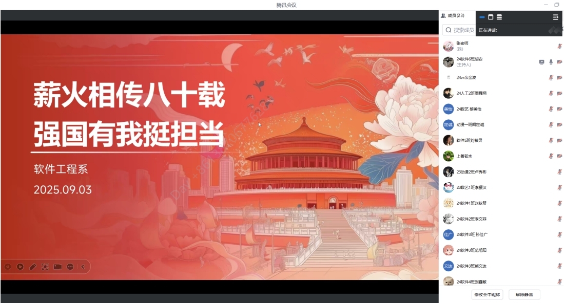 直播结束后,通过线上会议平台组织了学习分享会。同学们踊跃发言,结合自身感悟畅谈观看心得。“看到阅兵式上飘扬的五星红旗,我真切体会到‘国强则民安’的道理,也更加坚定了学好专业知识的决心。”“革命先辈用热血换来了今天的和平,我们作为青年一代,更要扛起时代责任,为国家发展贡献力量。” 真挚的发言中满含青年学子的担当与热忱。